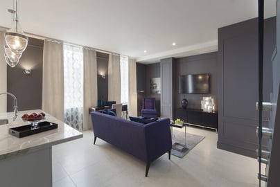 2 kings or 1 king/2 twins with 1,170 square feet of space, on floors 5-11. All have an island kitchen (range, fridge, dishwasher, wine cooler, sink, microwave & Nespresso machine) and a washer & dryer.